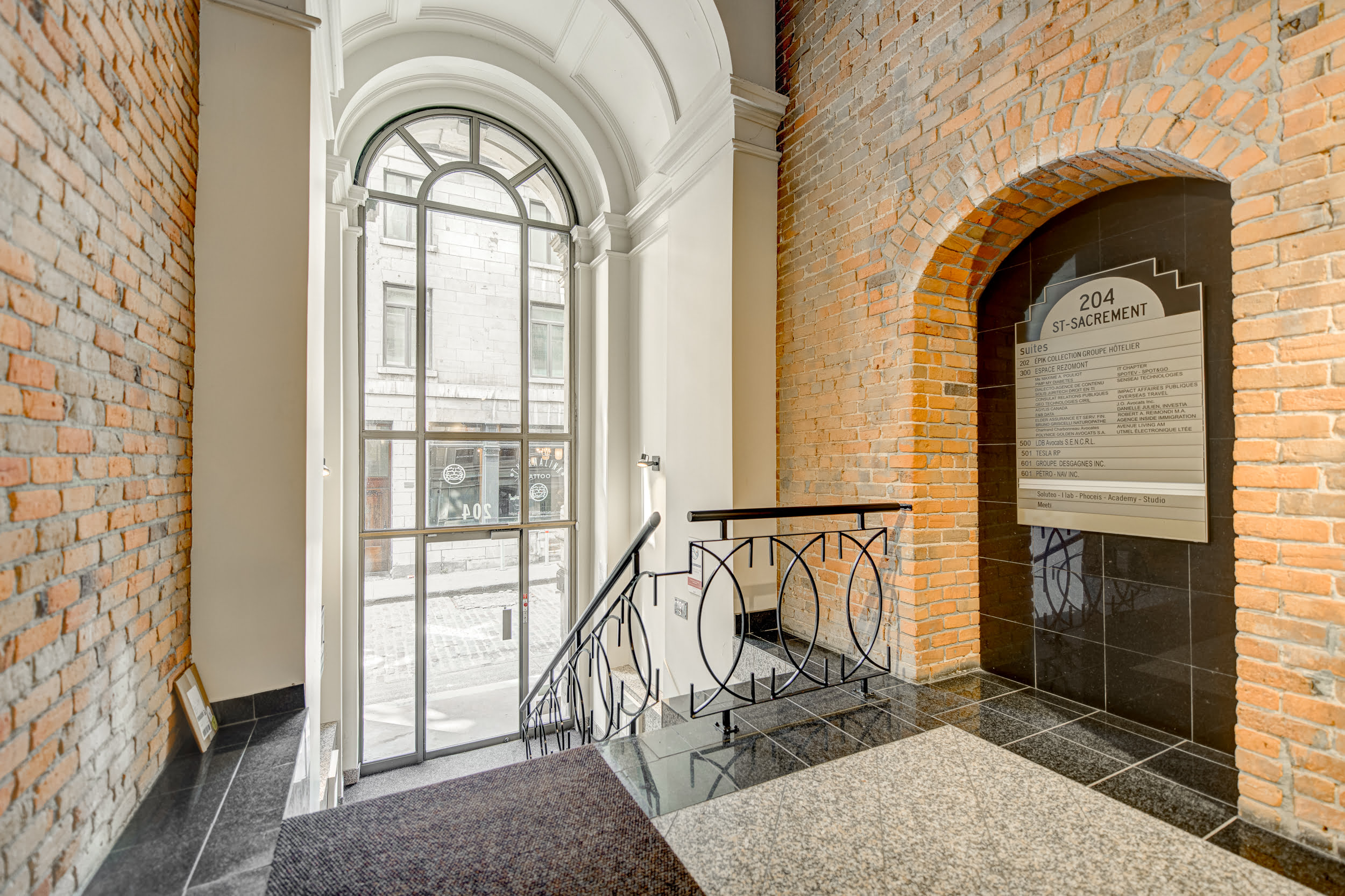 Chaque détail, de l’arche en briques aux colonnes majestueuses, est pensé pour refléter le prestige et l’histoire du 204 rue du Saint-Sacrement. Que vous soyez ici pour une réunion d’affaires ou simplement de passage, cet espace vous séduira par son authenticité et son élégance.